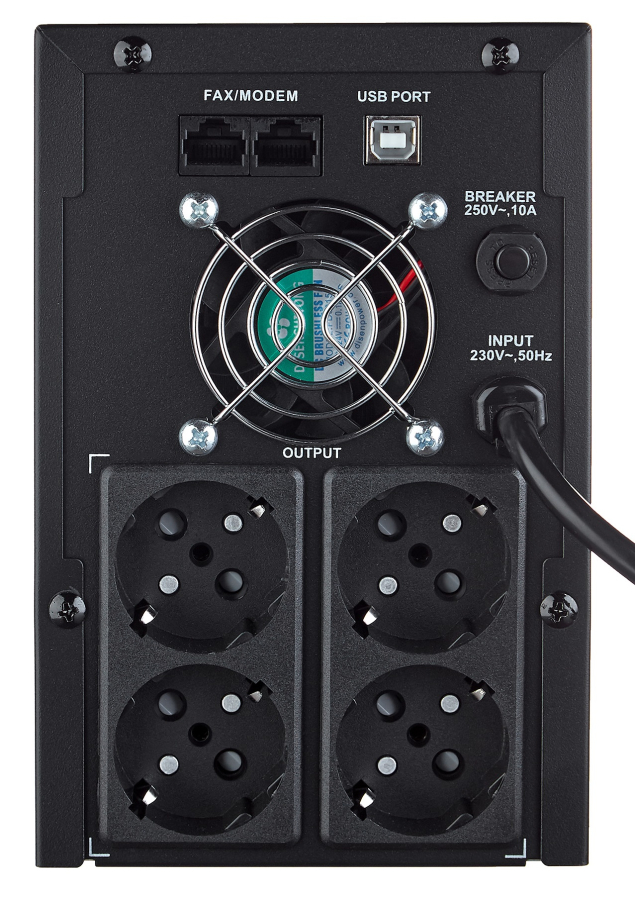 Источник бесперебойного питания Kiper Power C2000 USB (2000ВА/1200Вт.), 4шт. евро розетки, управление по USB, 12В/9Ач*2шт.