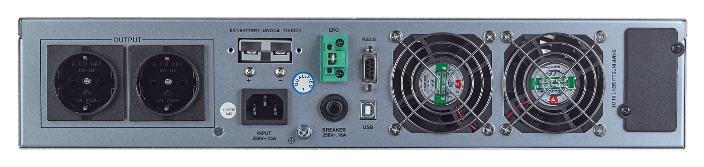 - Формфактор RM (2U) - ИБП устанавливается в стандартную 19"-и дюймовую стойку;