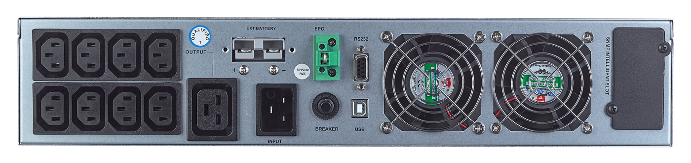 - Формфактор RM (2U) - ИБП устанавливается в стандартную 19"-и дюймовую стойку;