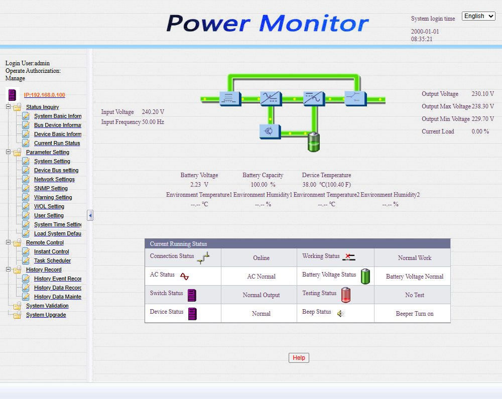 Для управления источником бесперебойного питания через установленную в слот карту Kiper Power SNMP Web Pro Gen1 дополнительного программного обеспечения устанавливать не требуется, вся информация отображается в вашем веб-браузере.